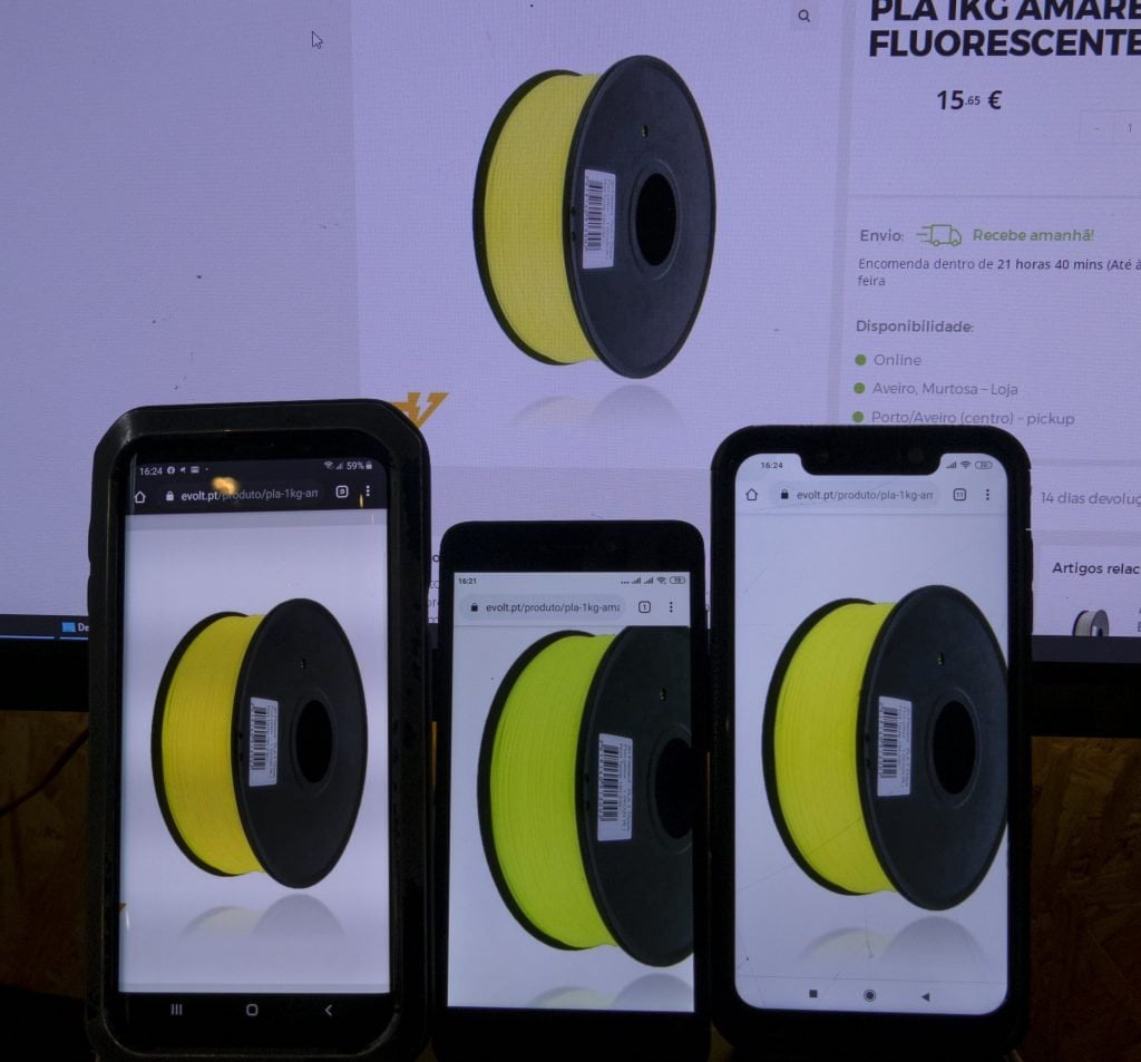Aqui está um exemplo do mesmo filamento 3D (mesma imagem) visto em 4 dispositivos diferentes: