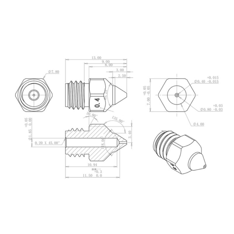 0.2mm Latão Nozzle TTS (Creality CR-6 CR6) MK8 produzido pela marca AIMSOAR.