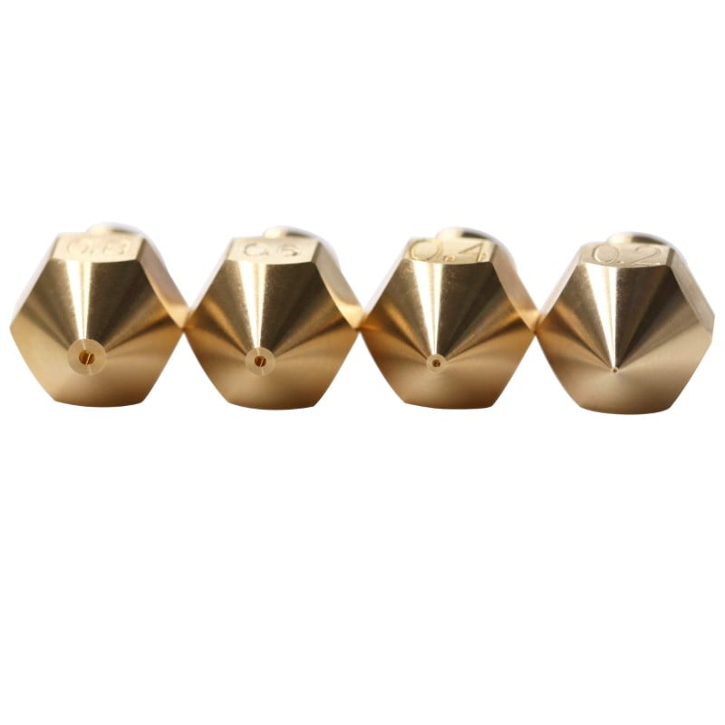 O latão além de ser fácil de ser fabricado, é um excelente condutor térmico, possuindo melhores prestações que nozzles de outros materiais como os nozzles de inox.