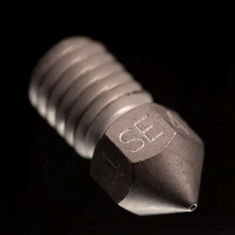 - Dureza Rockwell C 63 – projetado para lidar com filamentos abrasivos como PLA, PEI reforçado com fibra de vidro e muito mais.