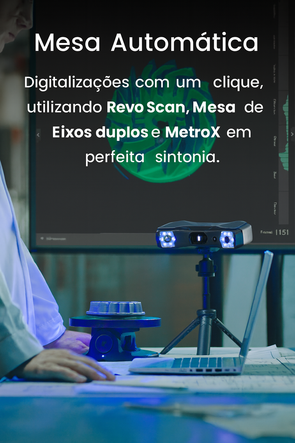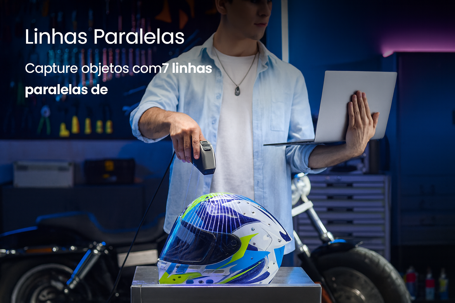 | Tecnologia | Digitalização por Laser de Múltiplas Linhas e Luz Estruturada de Campo Total |