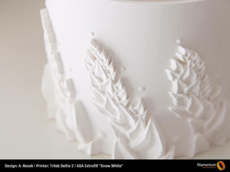 O filamento ASA é mais resistente à água, mais rígido que o ABS e muito mais fácil de imprimir (praticamente sem empenamento). Além disso, os filamentos ASA podem ser usados em combinação com materiais de suporte solúveis para facilitar a remoção.