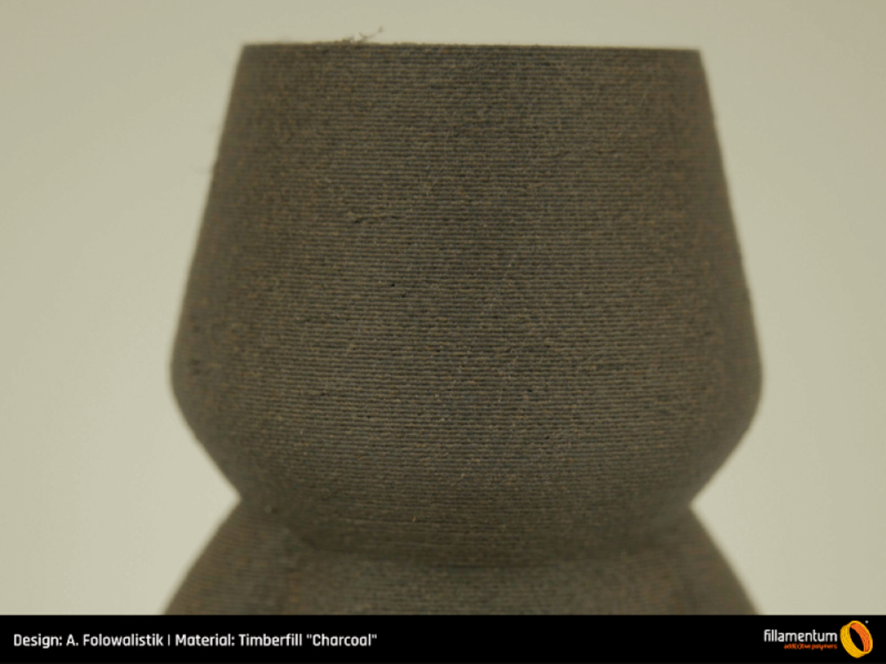 A peça impressa em 3D apresenta um acabamento de madeira esteticamente agradável e, quando extrudados, os filamentos Timberfil emitem um agradável aroma de abeto que permanece na peça por algum tempo. Este filamento tem uma tendência muito baixa de empenamento e laminação, facilitando a impressão como o PLA normal, mesmo em altas velocidades. A resistência ao calor das peças impressas em 3D com filamento Timberfill pode ser aumentada de 55°C a 80°C submetendo a peça a um processo de recozimento.