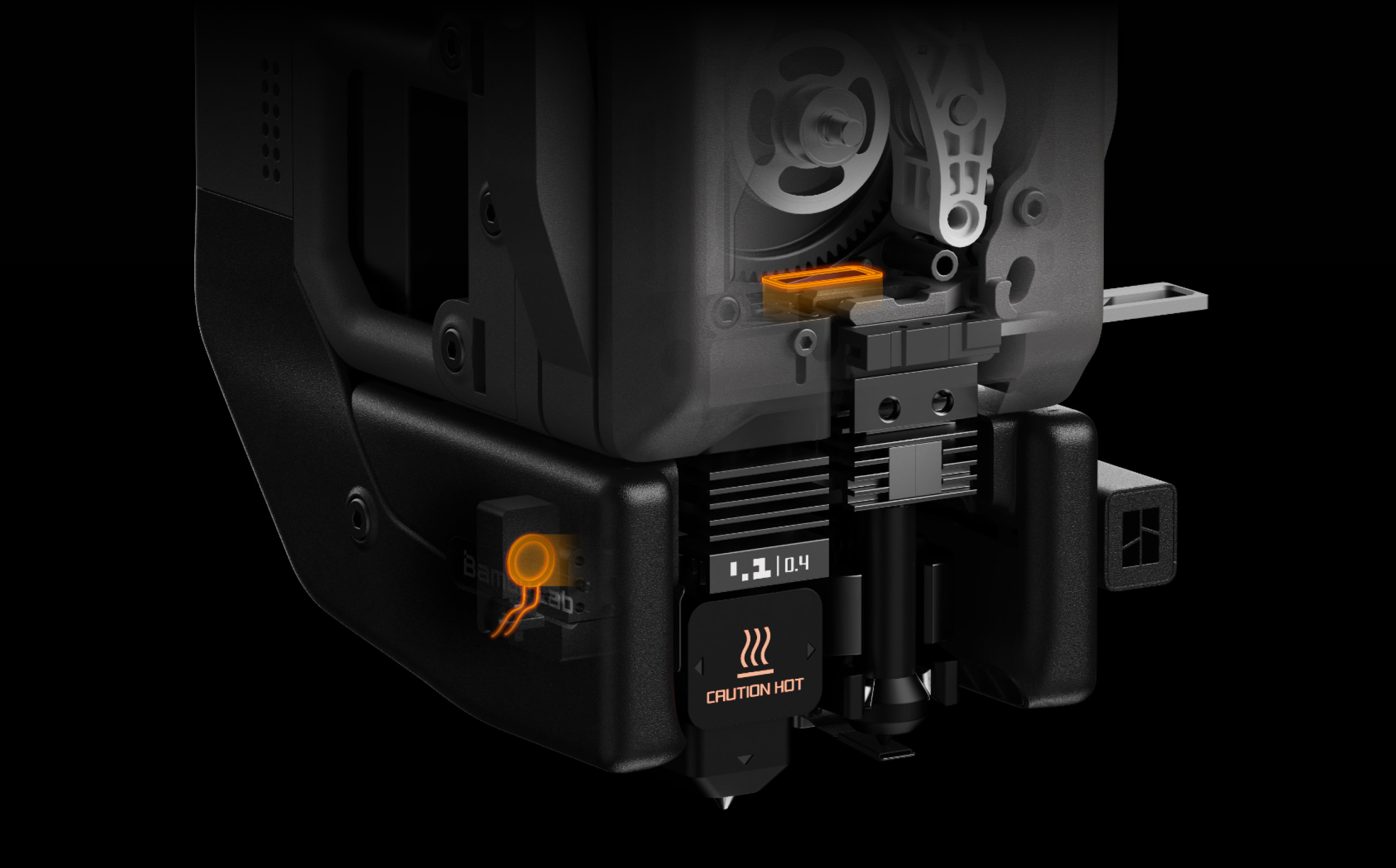 A tecnologia de aquecimento por indução coloca rapidamente o hotend na temperatura de impressão, reduzindo o tempo necessário em trocas de material.