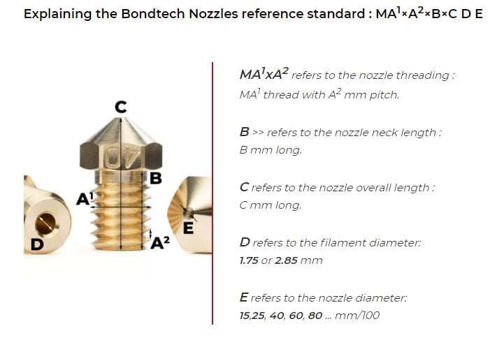 0.4mm Latão Nozzle M6×1×7.5×12.5 MOS 1.75 E3D V6 (compatível com MK2.5S, MK3S, MK2/S, MINI) – Bondtech