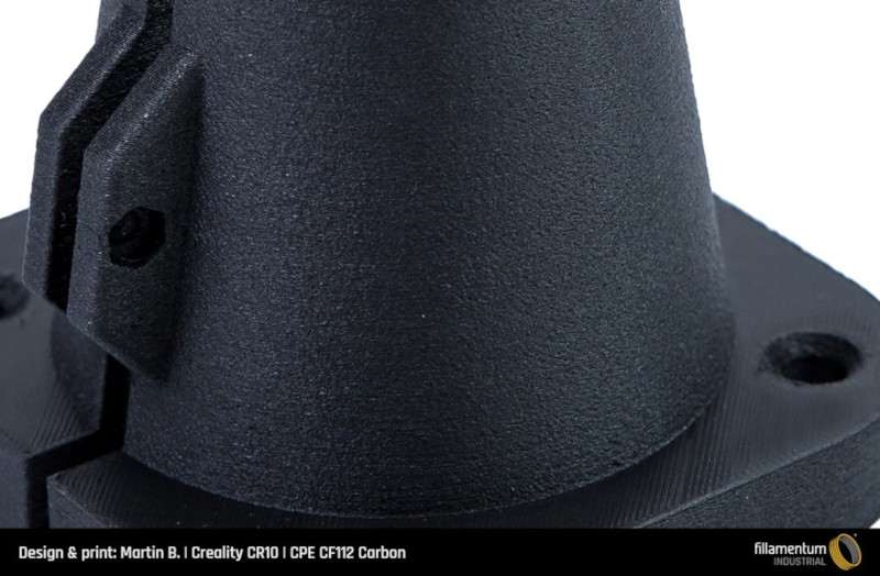 As peças obtidas com o filamento CPE CF112 contarão com um acabamento liso e mate e umas propriedades mecânicas similares ou inclusive superiores ao ABS, mas com a facilidade de impressão similar à do PLA, com uma excelente adesão entre capas e uma baixa deformação. Possui propriedades abrasivas, pelo que se recomenda utilizar nozzles de aço endurecido.