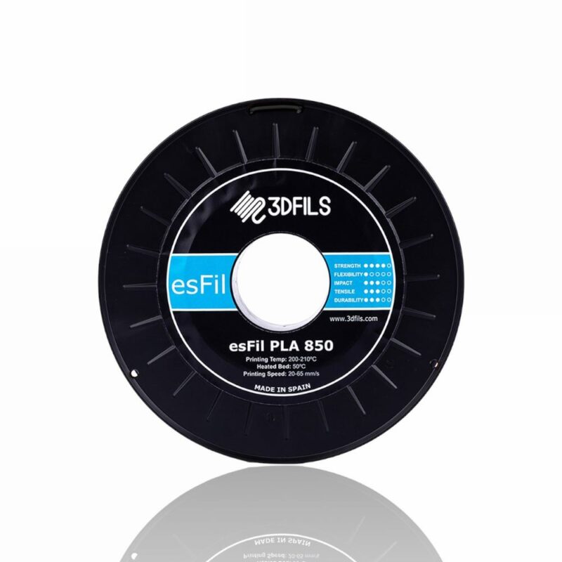 O filamento esFil PLA 850 é fabricado em Espanha a partir de plástico Ingeo 3D850 PLA da NatureWorks. Este PLA é desenvolvido especificamente para utilização na impressão 3D e é considerado o melhor PLA do mercado. O Ingeo 3D850 PLA permite uma maior velocidade de impressão e proporciona melhores propriedades mecânicas em comparação com outros filamentos PLA existentes no mercado. Além disso, as propriedades térmicas do PLA Ingeo 3D850 (cristalização rápida) conferem-lhe uma maior velocidade de arrefecimento, o que resulta numa melhor definição, uma vez que as camadas solidificam antes de se deformarem devido ao calor.