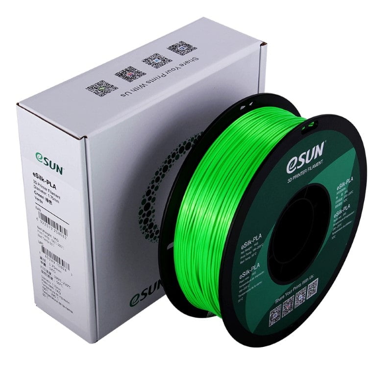 O PLA eSilk é feito de material composto de polímero, imprimindo de igual forma como o PLA.