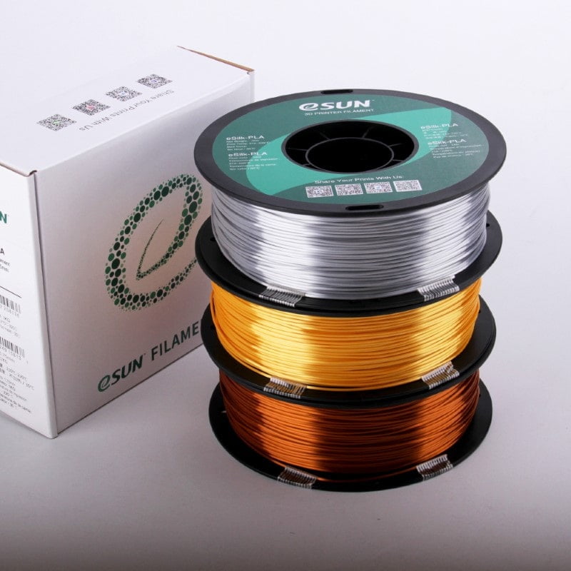 O PLA eSilk é feito de material composto de polímero, imprimindo de igual forma como o PLA.