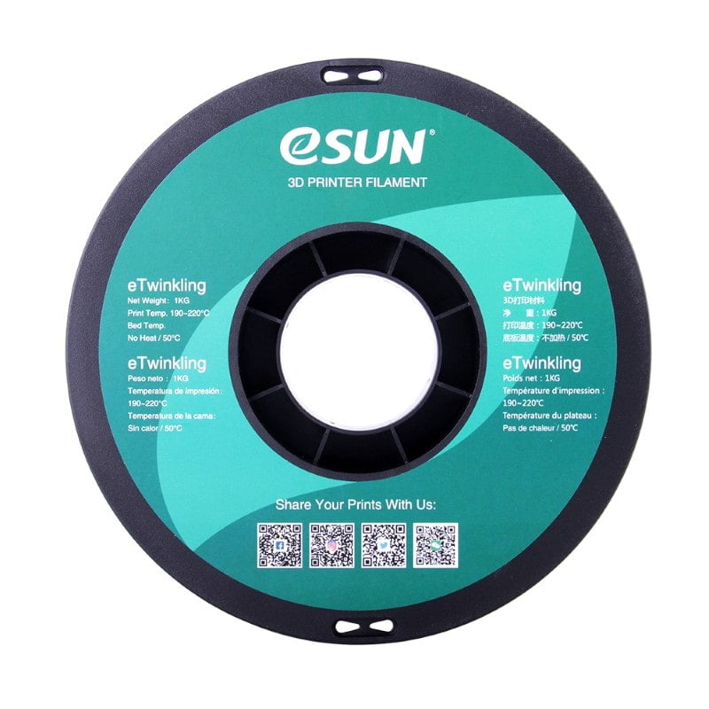 O PLA eTwinkling é feito de material composto de polímero, imprimindo de igual forma como o PLA.