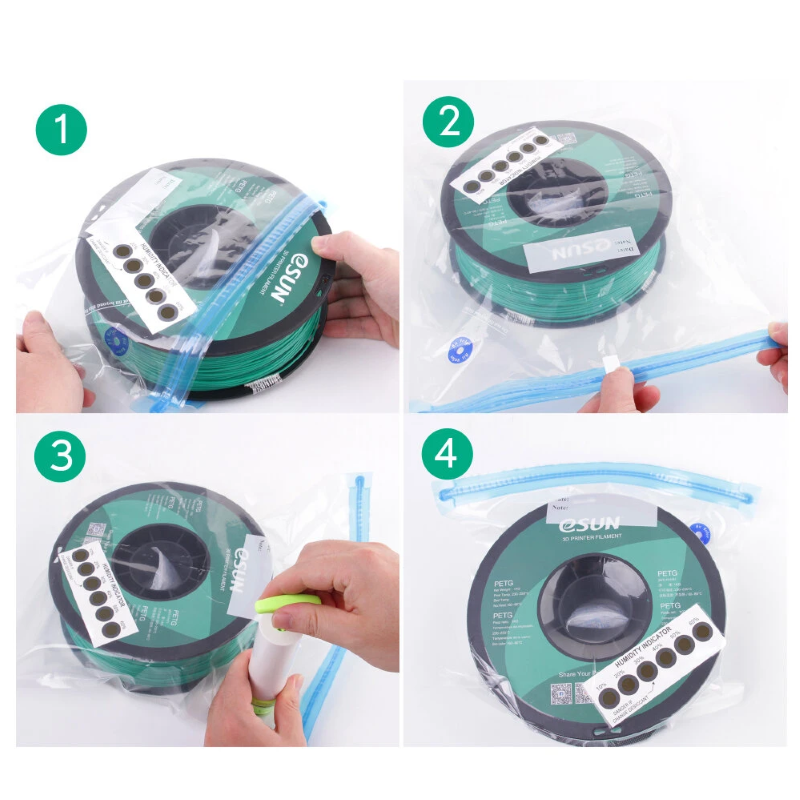 3. O saco de vácuo é especialmente concebido para filamentos de impressão 3D, que podem ser adaptados a um pacote de 0.5KG/0.75KG/1KG de filamentos de 1.75mm/2.85mm/3mm.