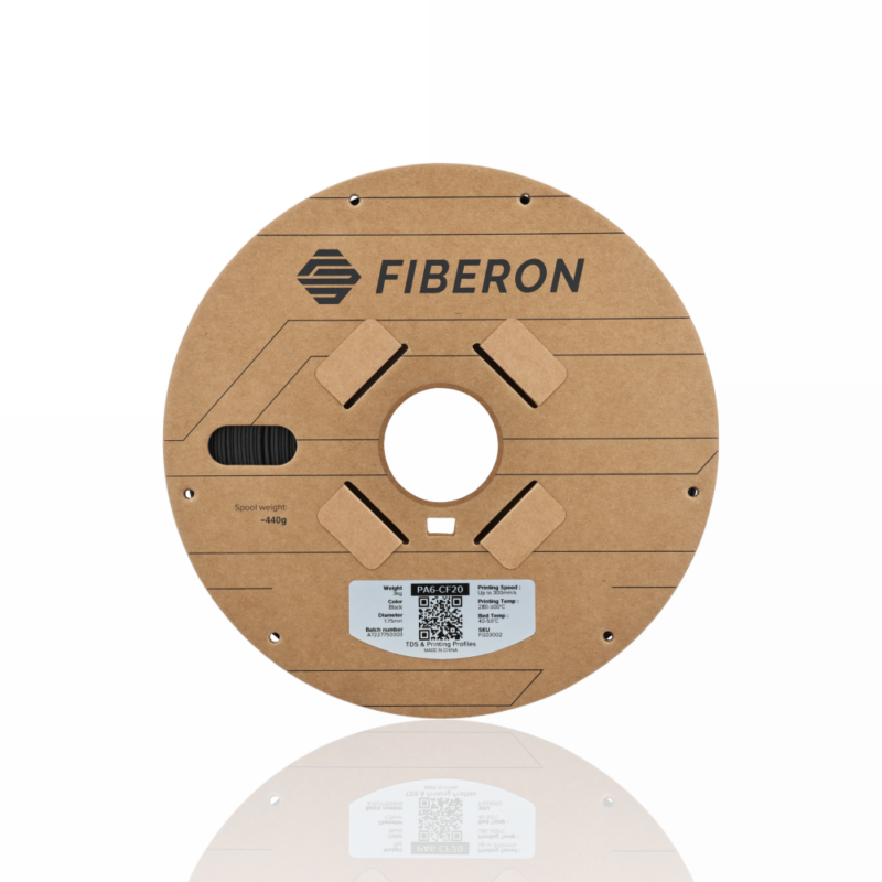 O Fiberon™ PA6-CF20 é um filamento de PA6 (Nylon 6) reforçado com fibra de carbono. O reforço de fibra de carbono proporciona melhorias significativas na rigidez, resistência mecânica e resistência térmica, com uma excelente adesão entre camadas.