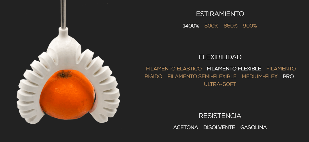 Tem uma flexibilidade extrema e uma elasticidade incrível nunca antes vista na impressão 3D.
