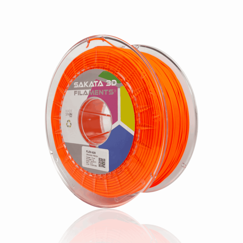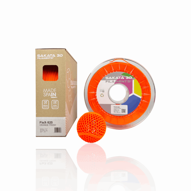 O FleX-920 é um filamento flexível desenvolvido pela Sakata 3D Filaments, sendo um produto único no mercado. Este material, 100% biodegradável e compostável, surge como uma alternativa ao TPU/TPE graças às suas propriedades elásticas. Além disso, oferece a mesma facilidade de impressão que o PLA. Este filamento inovador permite-te criar peças com um elevado grau de flexibilidade (89 Shore A).