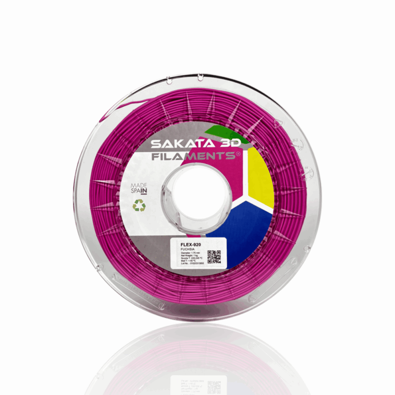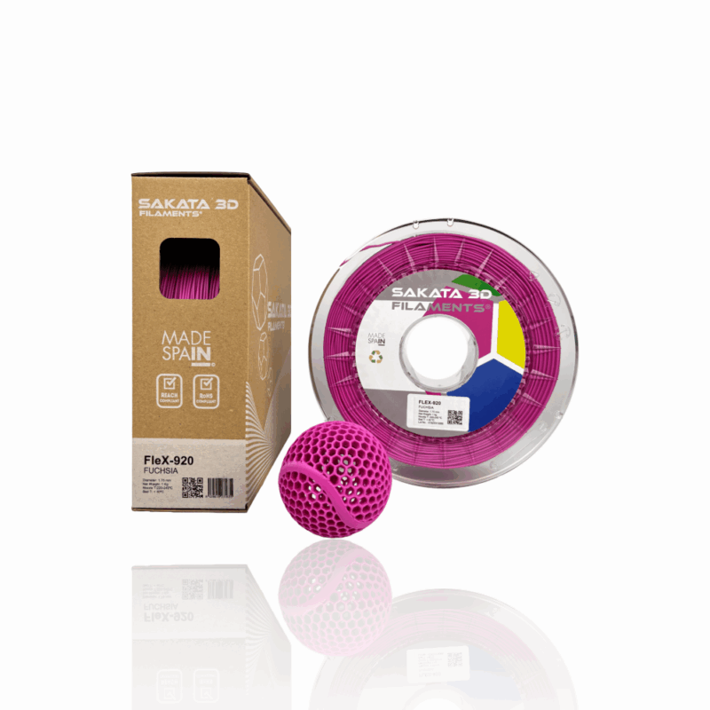 O FleX-920 é um filamento flexível desenvolvido pela Sakata 3D Filaments, sendo um produto único no mercado. Este material, 100% biodegradável e compostável, surge como uma alternativa ao TPU/TPE graças às suas propriedades elásticas. Além disso, oferece a mesma facilidade de impressão que o PLA. Este filamento inovador permite-te criar peças com um elevado grau de flexibilidade (89 Shore A).