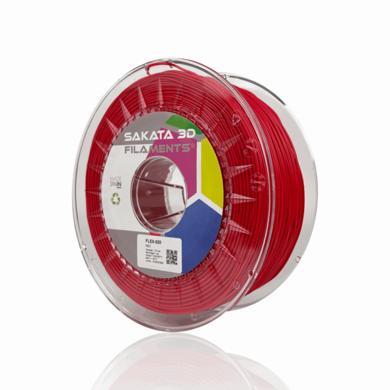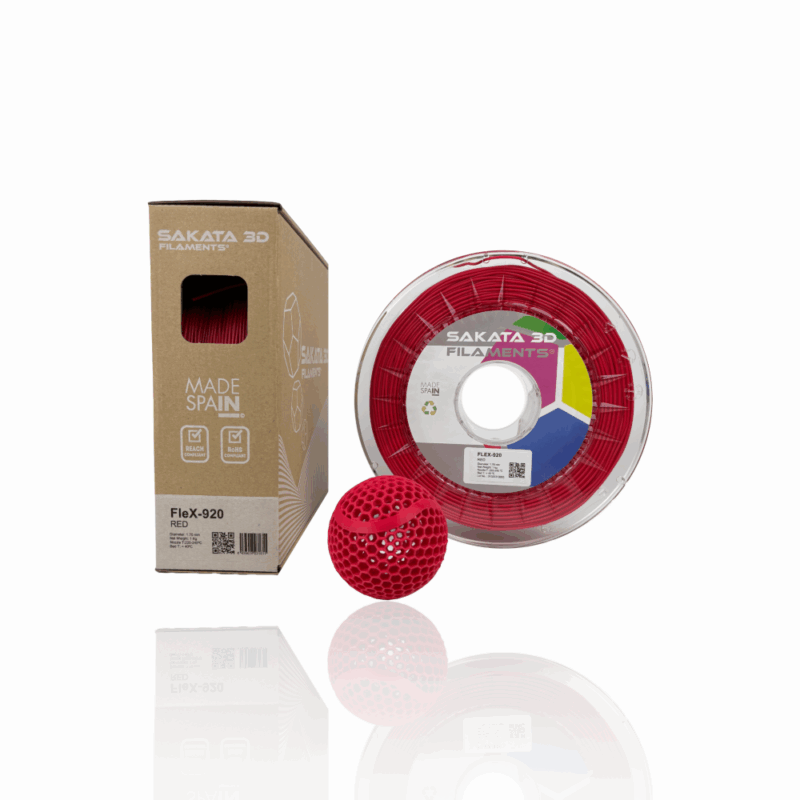 O FleX-920 é um filamento flexível desenvolvido pela Sakata 3D Filaments, sendo um produto único no mercado. Este material, 100% biodegradável e compostável, surge como uma alternativa ao TPU/TPE graças às suas propriedades elásticas. Além disso, oferece a mesma facilidade de impressão que o PLA. Este filamento inovador permite-te criar peças com um elevado grau de flexibilidade (89 Shore A).
