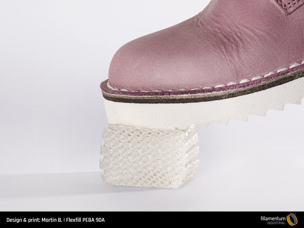Uma das aplicações deste material é no fabrico de solas de sapatos. Esta aplicação é possível graças ao elevado retorno de energia, resistência à abrasão e baixa densidade do Flexfill PEBA 90A. A sua alta resistência ao stress dinâmico devido a movimentos cíclicos e a sua baixa fluência tornam-no também muito útil no fabrico de objectos que transferem vibrações.