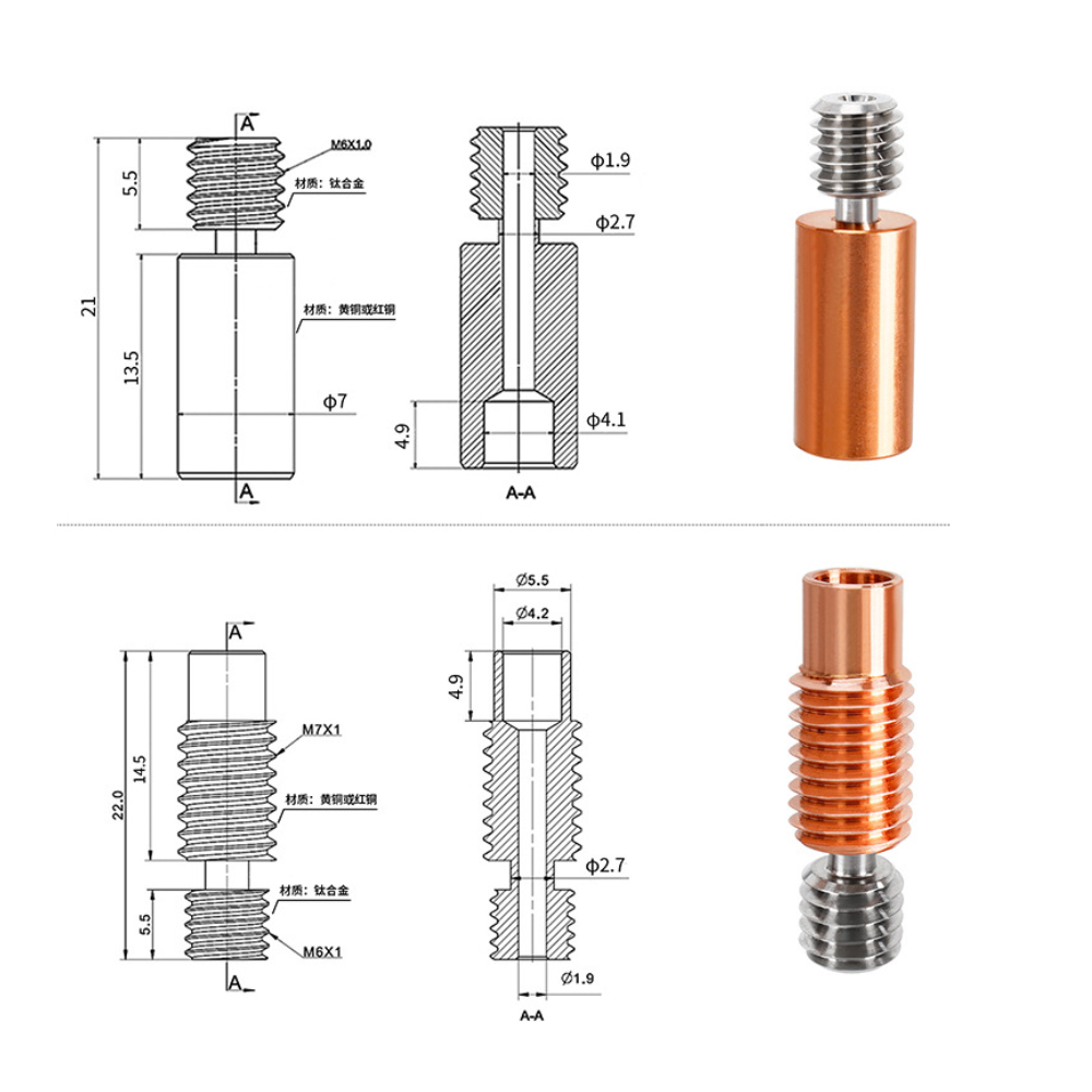 Heat Break Bi-Metal TITÂNIO Cobre E3D V6 Clone sem Rosca ( Heatbreak titanium alloy red copper Copper smoothy) – AIMSOAR