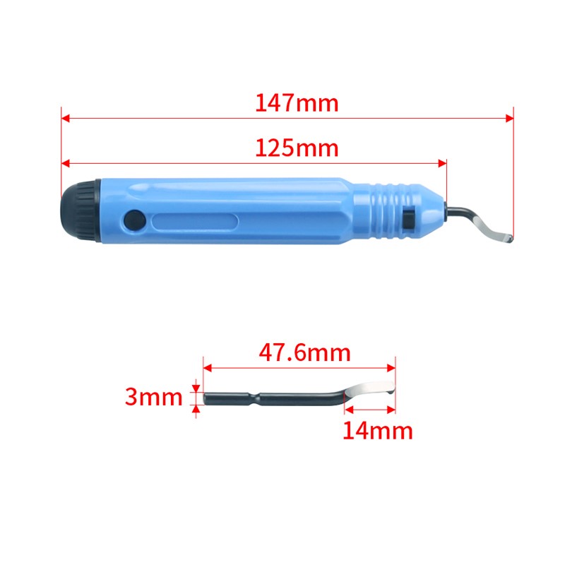 A ferramenta de rebarbamento é de pequeno tamanho, perfeita para cortar a aresta dos furos circulares, furos profundos, aresta reta, arestas curvas