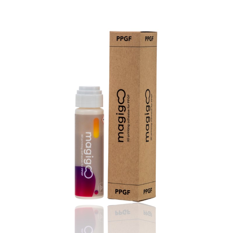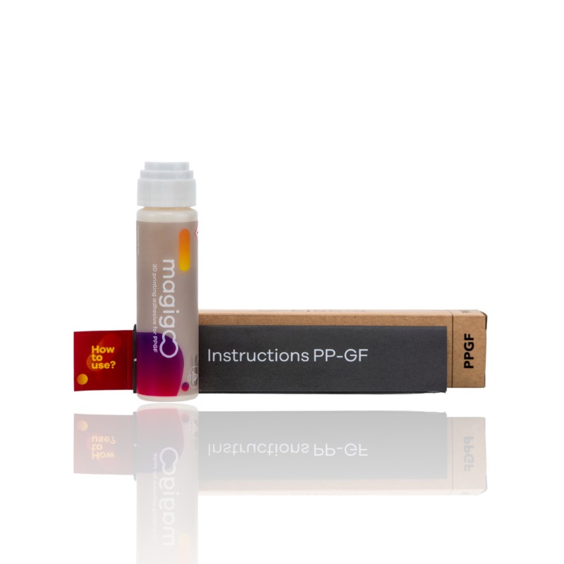 Este é o Magigoo PPGF, o adesivo especificamente concebido para impressão 3D em plásticos de polipropileno com enchimento de vidro. Oferece uma forte plataforma de adesão para filamentos à base de polipropileno recheados de vidro.