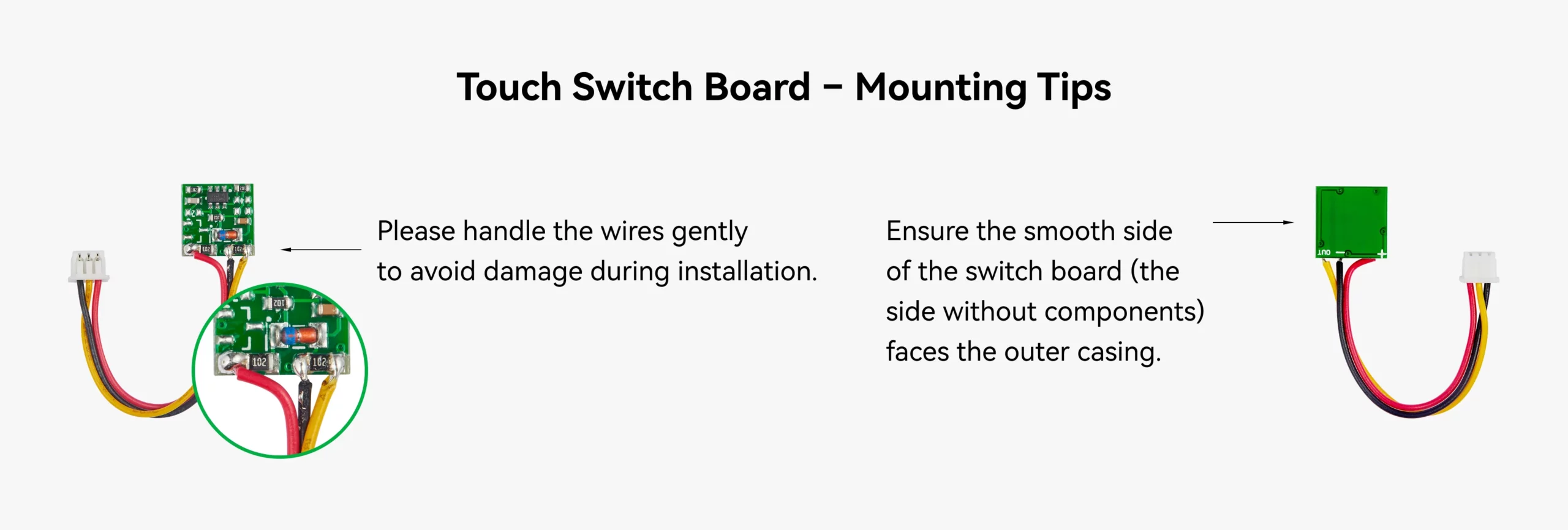 Manuseie cuidadosamente as ligações e cabos do interruptor tátil para evitar danos.