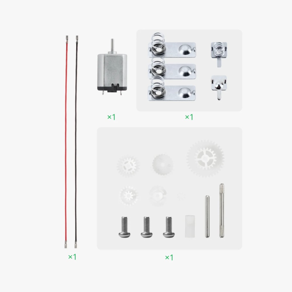 Imagina ter a tua própria mini-fábrica em casa, onde podes criar peças únicas e originais! Este conjunto de acessórios é a tua arma secreta. Recheado com uma variedade de componentes — desde motores vibrantes, engrenagens que clicam até luzes suaves tipo vela — está pronto para libertares a tua criatividade e montares modelos incríveis.