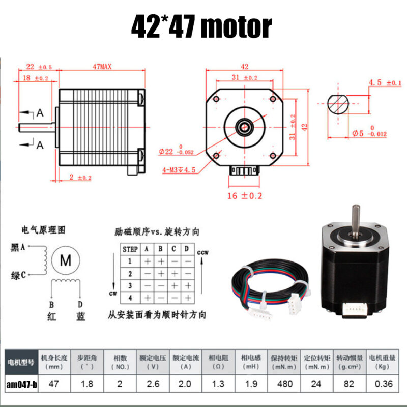 Motor 42 stepper 47mm 1.8º 42*42*47mm da marca Aimsoar.