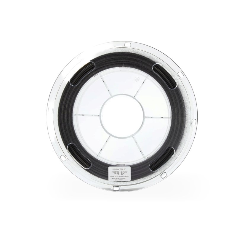 PolyMide PA12-CF é um novo filamento de engenharia altamente estável tanto na impressão como na aplicação, proporcionando propriedades mecânicas previsíveis independentemente do ambiente operacional. PolyMide PA12-CF consegue isto através do seu polímero base, o nylon 12, que tem uma maior estabilidade de humidade em comparação com os filamentos convencionais de nylon 6. Isto significa que as peças impressas de PolyMide PA12-CF têm uma alteração mínima nas propriedades mecânicas entre os estados seco e húmido, tornando as propriedades mecânicas das peças impressas mais previsíveis. PA12-CF contém 10% de fibras de carbono cortadas, que proporcionam resistência e rigidez adicionais enquanto baixam o coeficiente de expansão térmica. Estas propriedades, em conjunto com as tecnologias Polymaker’s Warp-Free e Fiber Adhesion, proporcionam um filamento fácil de imprimir com propriedades altamente desejáveis.