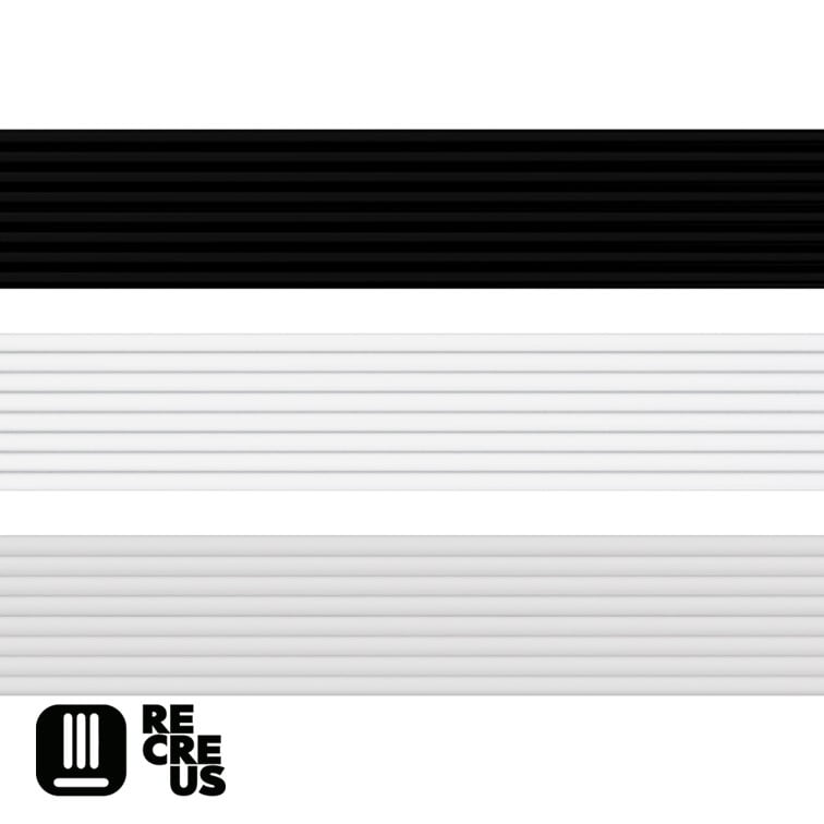 O ‘Filaflex Family Pack’ contém três amostras de 50 g dos três valores de dureza costeira do filamento flexível Filaflex (82A de cor branca, 95A de cor preta e 70A de cor transparente).