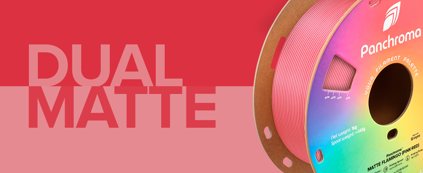 Panchroma™ Dual Matte é um filamento para impressão 3D à base de bioplástico, desenvolvido de raiz para representar a nova geração de PLA, oferecendo facilidade de utilização, qualidade de impressão, velocidade e fiabilidade.