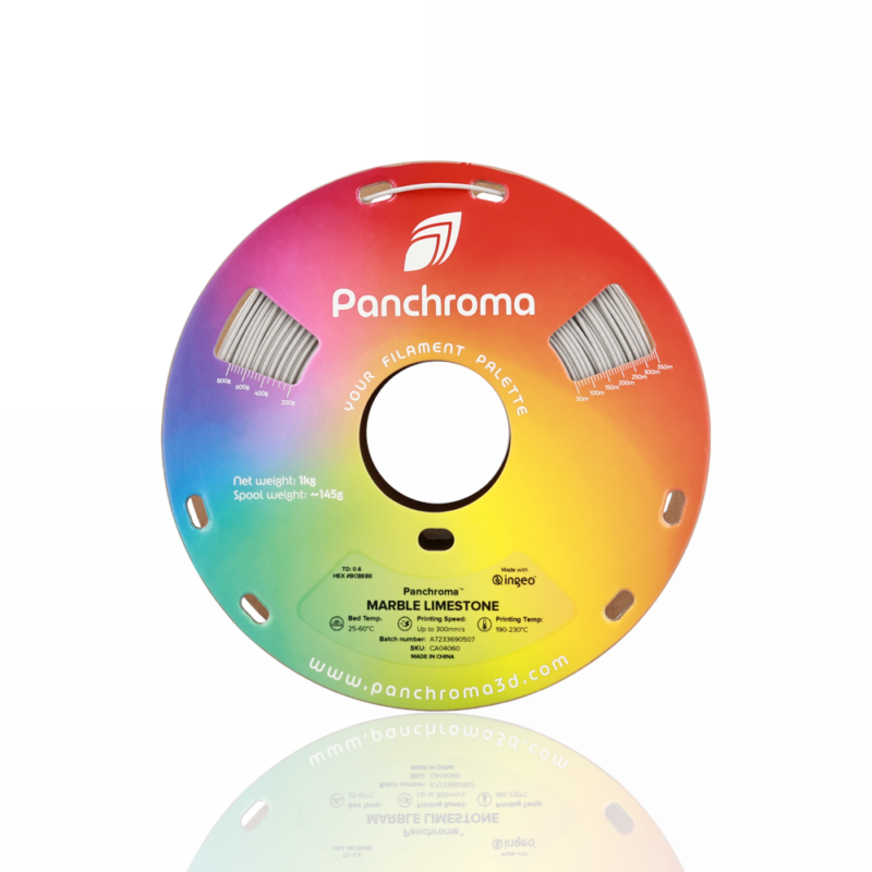 Panchroma™ Marble é um filamento bioplástico para impressão 3D, desenvolvido de raiz para representar a nova geração de PLA, oferecendo facilidade de utilização, qualidade de impressão, velocidade e fiabilidade.