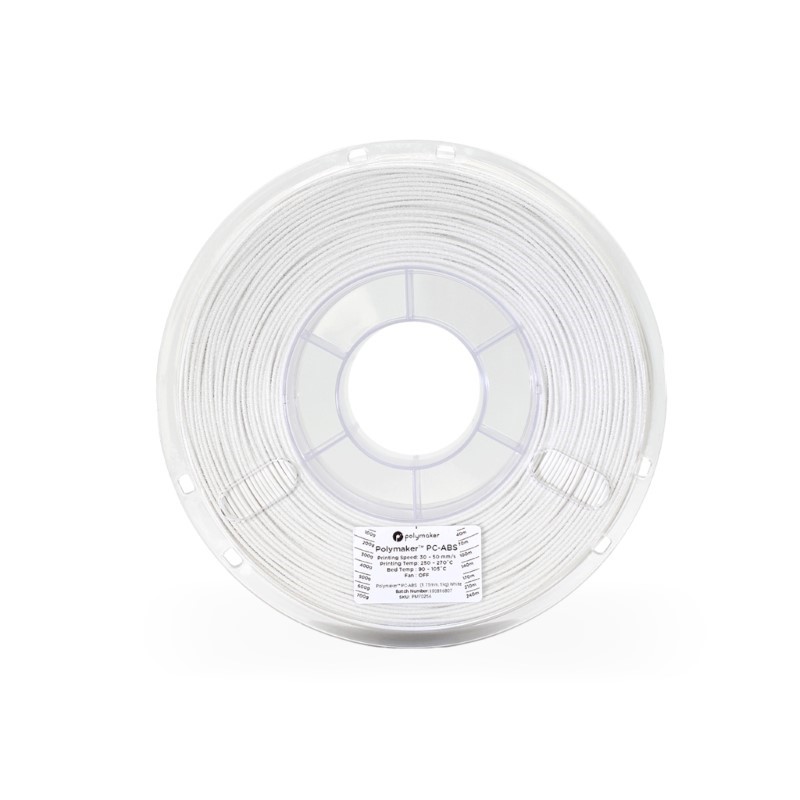 Polymaker™ PC-ABS é uma mistura de polímeros PC/ABS que oferece excelente tenacidade e resistência ao calor ao mesmo tempo que apresenta bom acabamento superficial e boa compatibilidade com o revestimento de metal.
