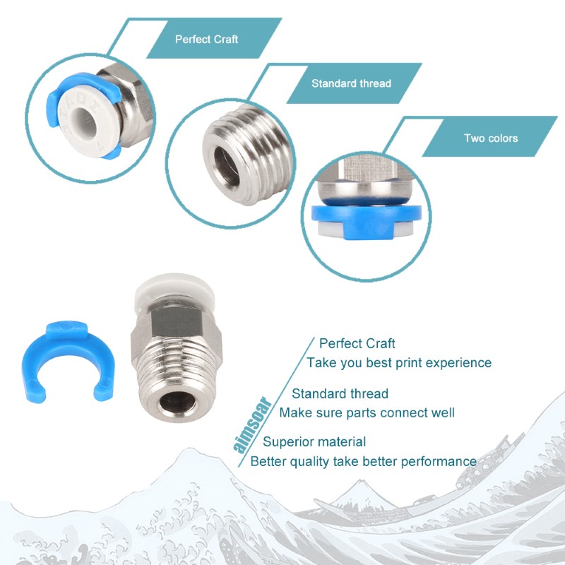 PC4-M10 JP4-01 Conector Pneumático Vazado com Clip para tubo PTFE Quick Push-In – AIMSOAR
