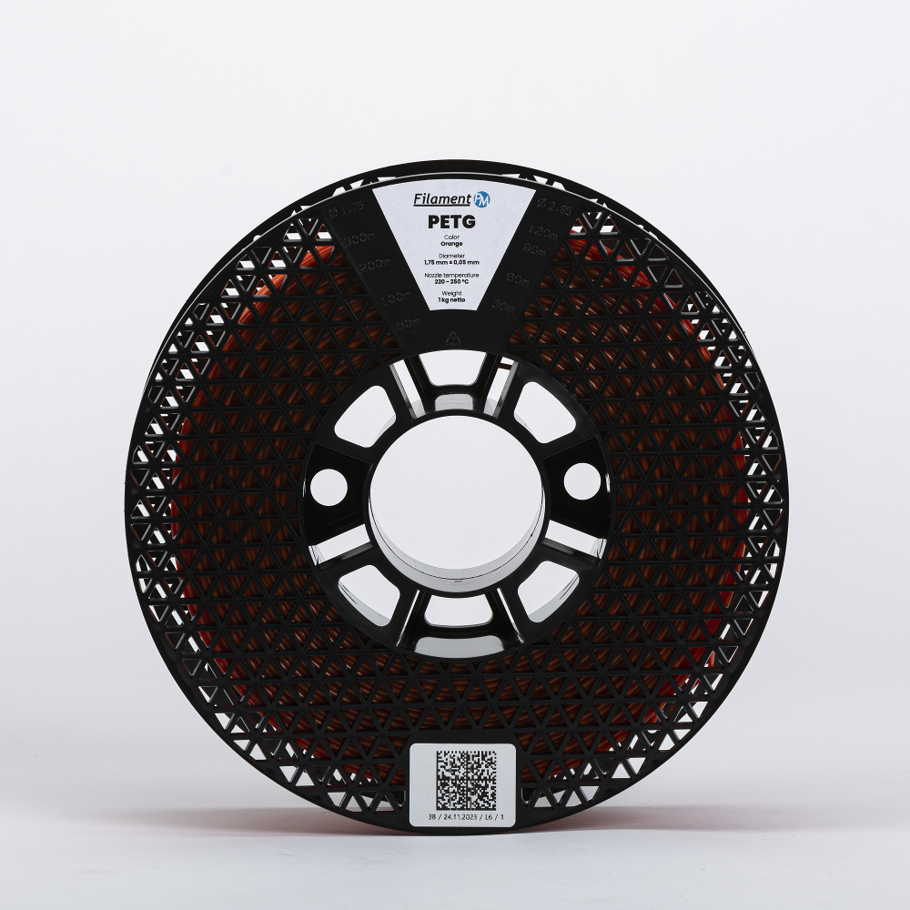 Filamento PETG para impressão 3D da marca Filament PM, de qualidade premium, com enrolamento perfeito, indicado tanto para utilizadores mais avançados e profissionais como para quem está a começar.