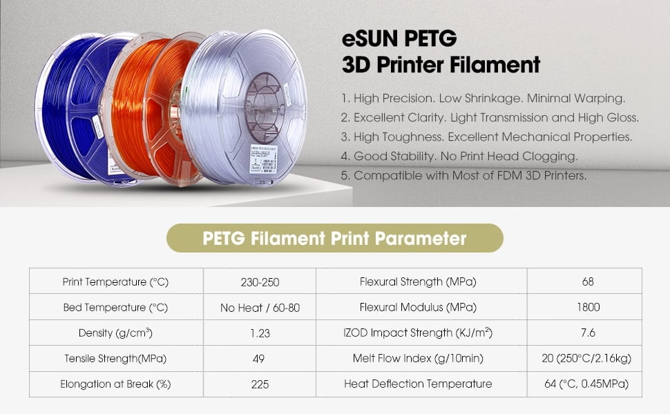 O filamento PETG ESUN é compatível com quase todas as impressoras 3D, incluindo impressoras RepRap e MakerBot, Ultimaker, Bits from Bytes, Airwolf3D, Makergear, Printrbot, Bukobot, Creality, Type A Machines e muitas mais.