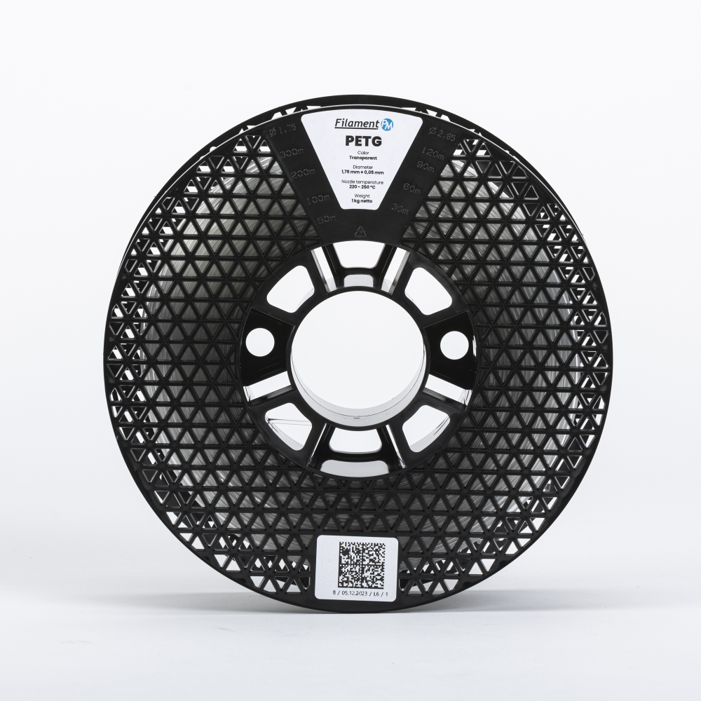 Filamento PETG para impressão 3D da marca Filament PM, de qualidade premium, com enrolamento perfeito, indicado tanto para utilizadores mais avançados e profissionais como para quem está a começar.
