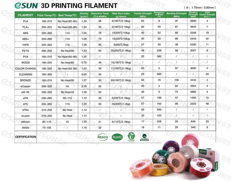 1.75mm (+-0.05mm) – Espessura / Tolerância de diâmetro