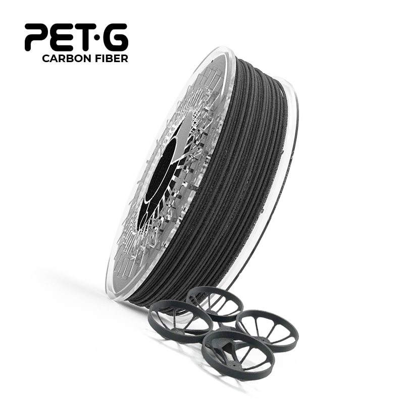 Filamento PET-G CF reforçado com fibra de carbono. Este material tem excelentes propriedades mecânicas para garantir peças de alta resistência ao impacto sem renunciar à facilidade de impressão de PET-G.