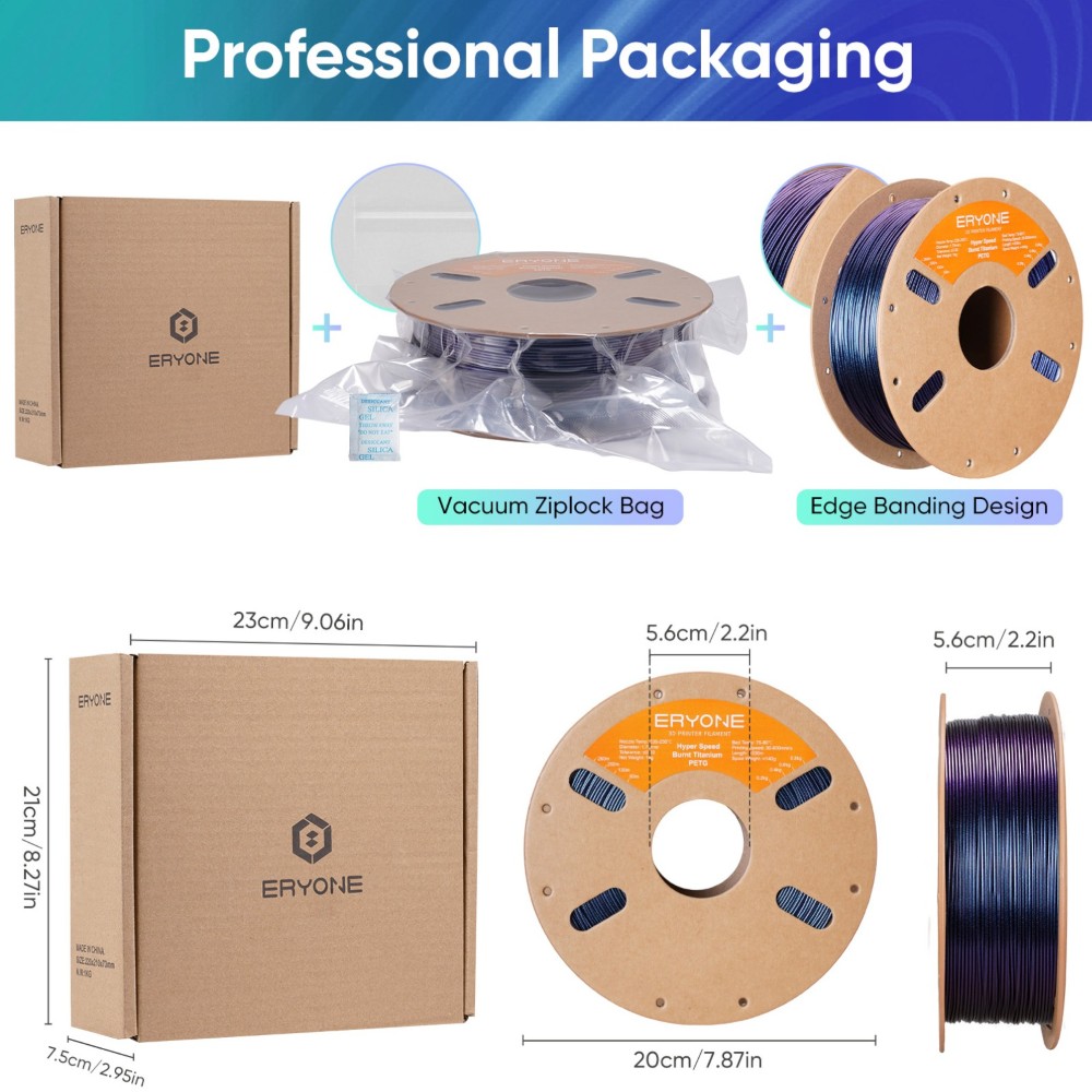 O filamento Eryone High Speed Burnt Titanium PETG é um material que supera os filamentos tradicionais à base de PLA com efeito Burnt Titanium.
