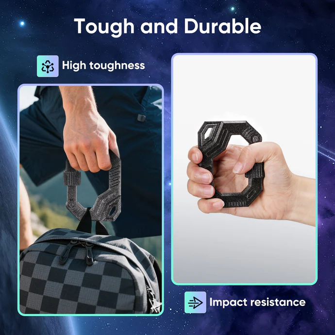 Alta resistência ao impacto e excelente adesão entre camadas, superando o PLA para peças funcionais, duráveis e sem fissuras.