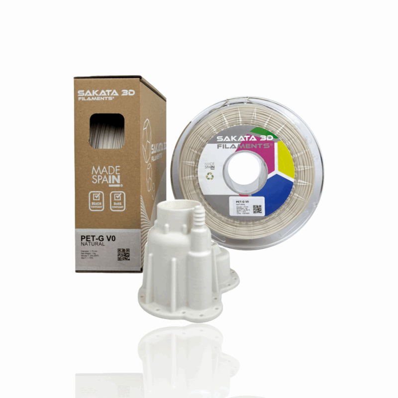 O filamento SAKATA 3D PET‑G V0 é composto por um PET‑G (polietileno tereftalato com glicol) com classificação de inflamabilidade V‑0 segundo a norma UL 94.
