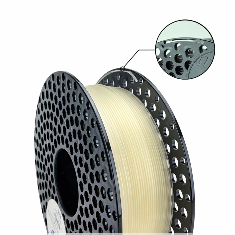 O filamento PLA é um polímero estável, permanente e inodoro. Como contrapartida do PLA em relação ao ABS cabe mencionar que a sua temperatura de amolecimento é de 60ºC em relação aos 100ºC do ABS.