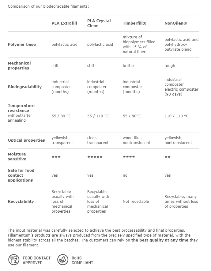 As bobinas de 750gr de filamento PLA Extrafill da Fillamentum podem ser impressas facilmente em qualquer impressora 3D FFF/FDM. O PLA é um dos materiais mais utilizados em impressão 3D nos dia de hoje, como não liberta gases nocivos e é muito fácil imprimir com ele visto que não é imprescindível dispor de base de impressão quente. Se tens interesse em saber mais sobre este material podes ler mais aqui. O PLA (Ácido Polilático) é um plástico biodegradável que se obtém a partir de recursos naturais, como a partir do amido extraído do milho, da beterraba ou do trigo.
