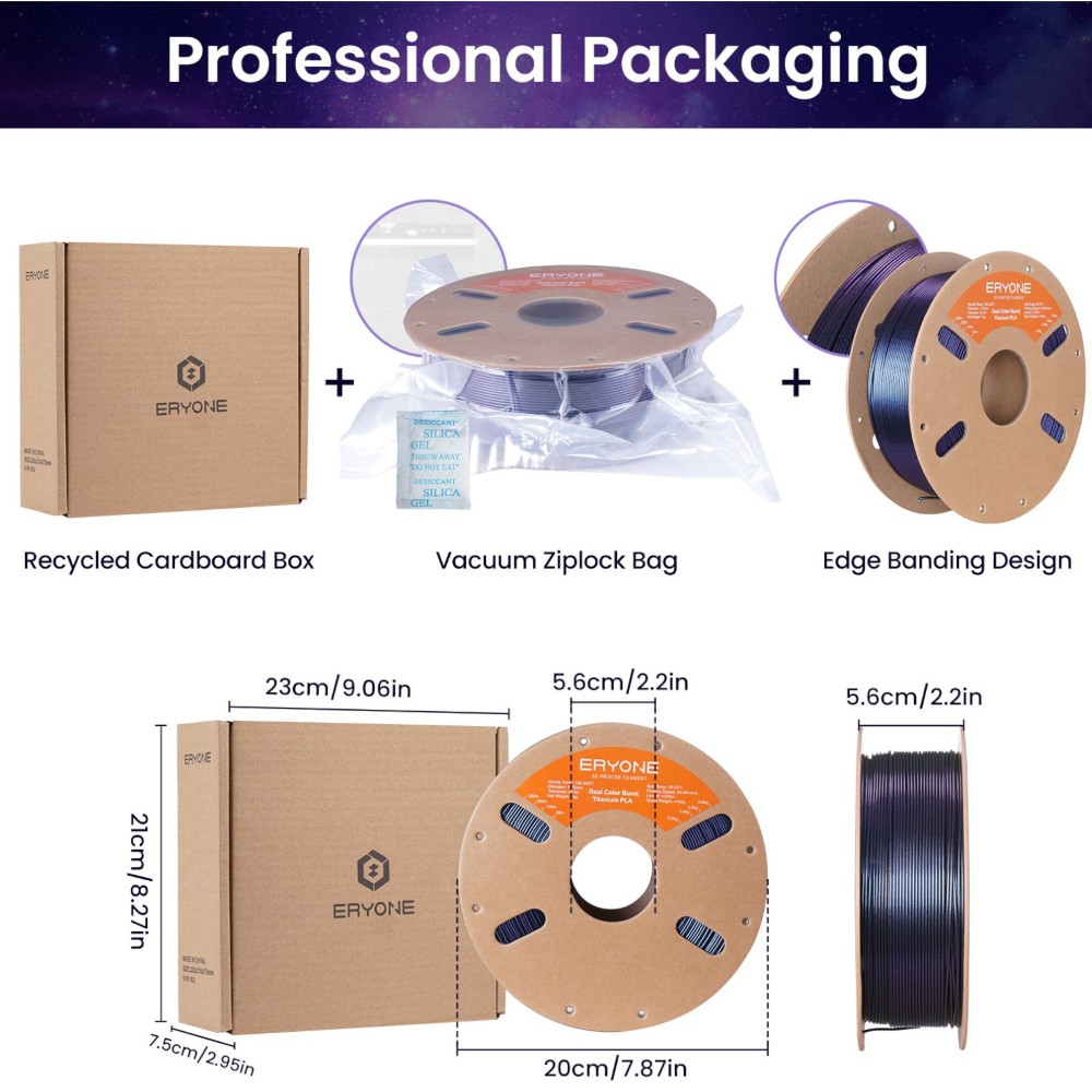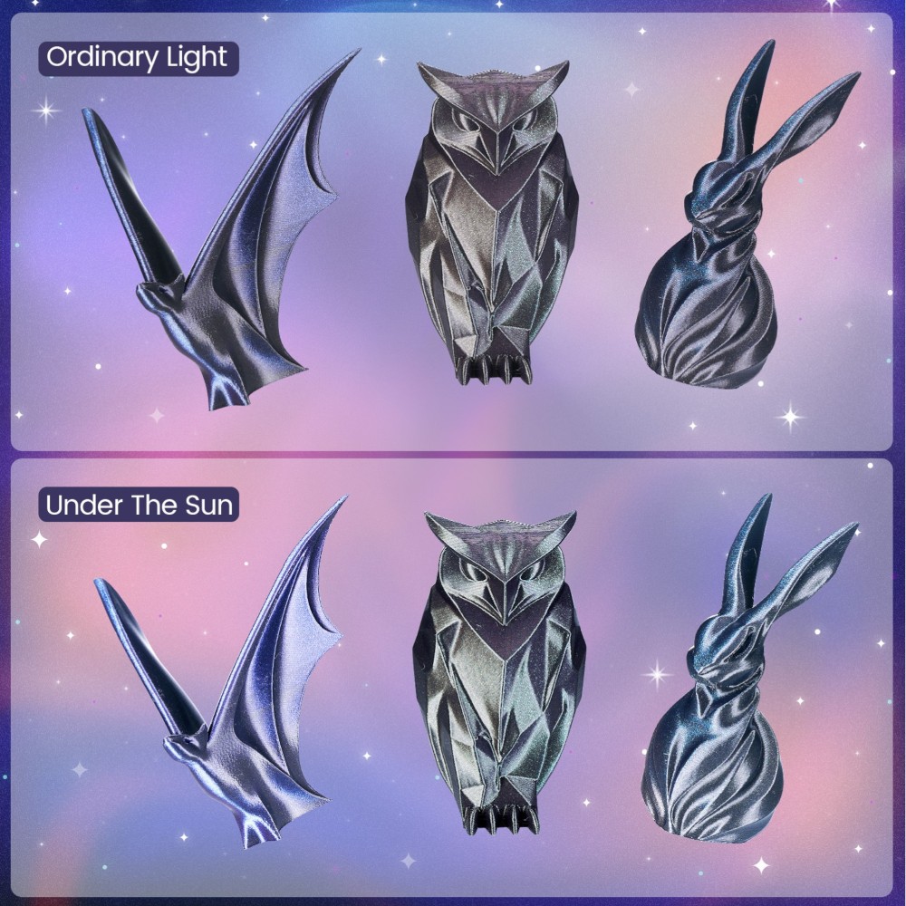 O filamento Eryone Burnt Titanium PLA oferece mudanças de cor cativantes, visíveis sob diferentes iluminações e ângulos, criando uma atmosfera tecnológica única e proporcionando uma experiência visual e tátil excecional.