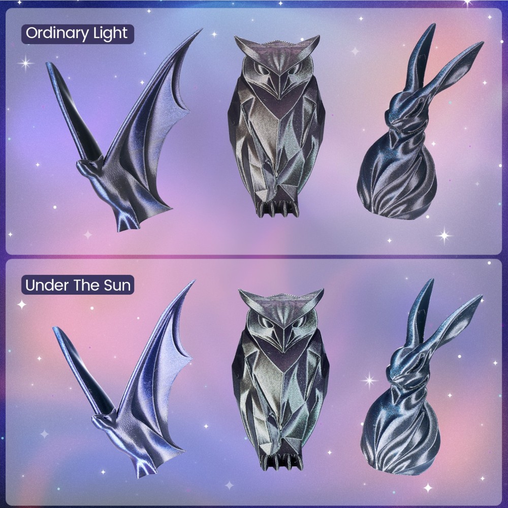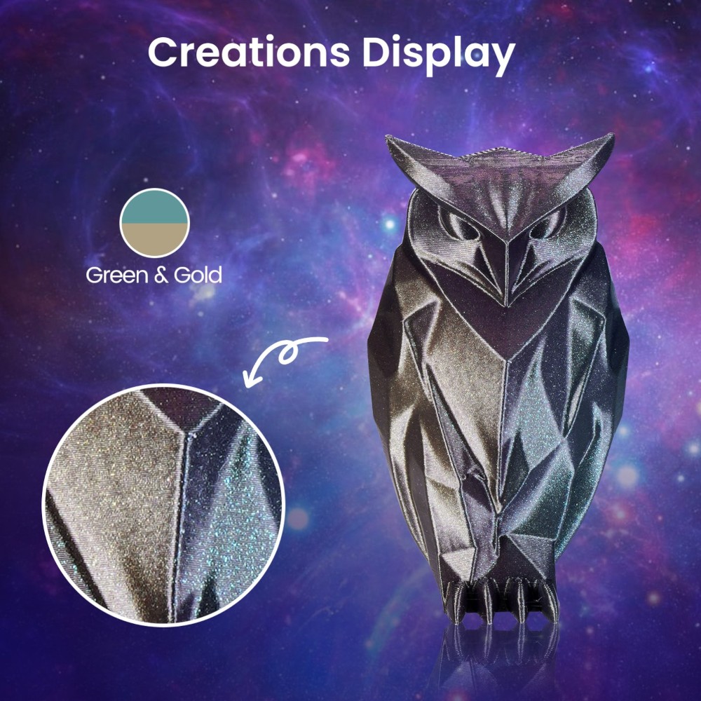 O filamento Eryone Burnt Titanium PLA oferece mudanças de cor cativantes, visíveis sob diferentes iluminações e ângulos, criando uma atmosfera tecnológica única e proporcionando uma experiência visual e tátil excecional.