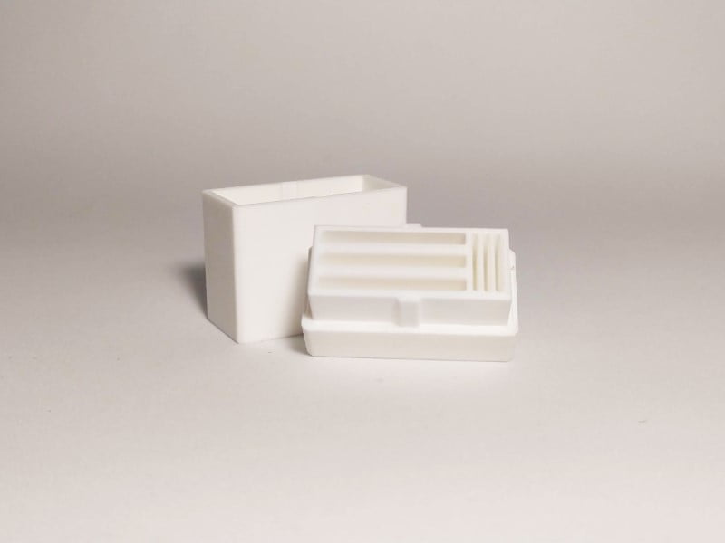 Permite a impressão de peças de elevada resolução e complexidade. Evita deformações nas peças e é útil para a impressão de pontes sem necessidade de suportes.