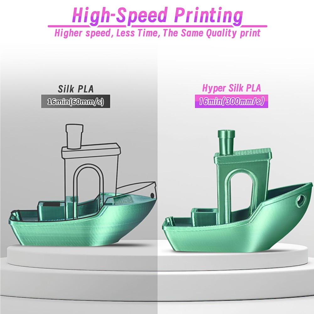 O filamento PLA de alta velocidade da ERYONE possui fluidez melhorada, permitindo que derreta rapidamente e flua de forma suave, alcançando velocidades de impressão até 500 mm/s.