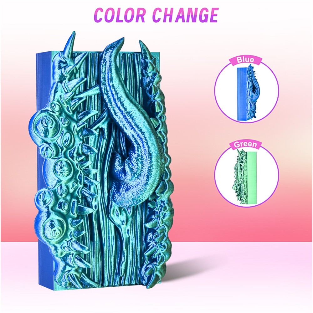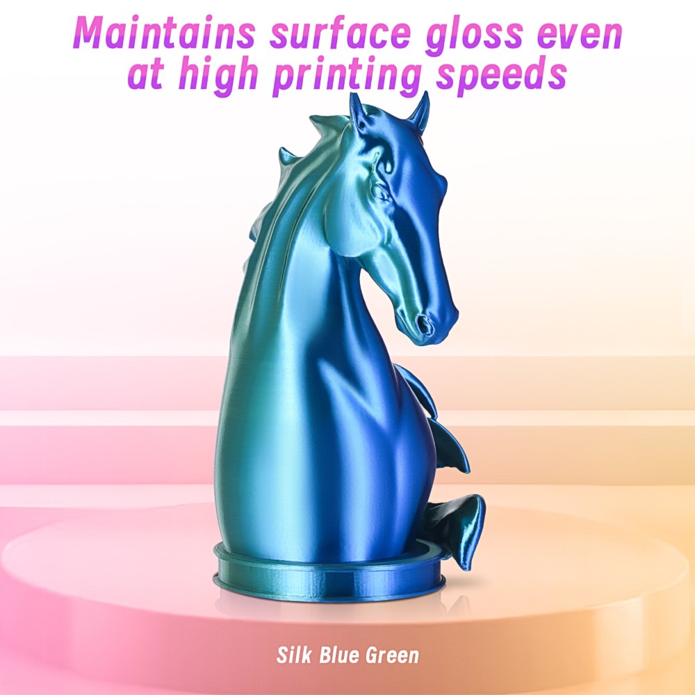 O filamento PLA Silk de Alta Velocidade Dual-Color é enrolado totalmente de forma mecânica, garantindo fios organizados e sem emaranhados.