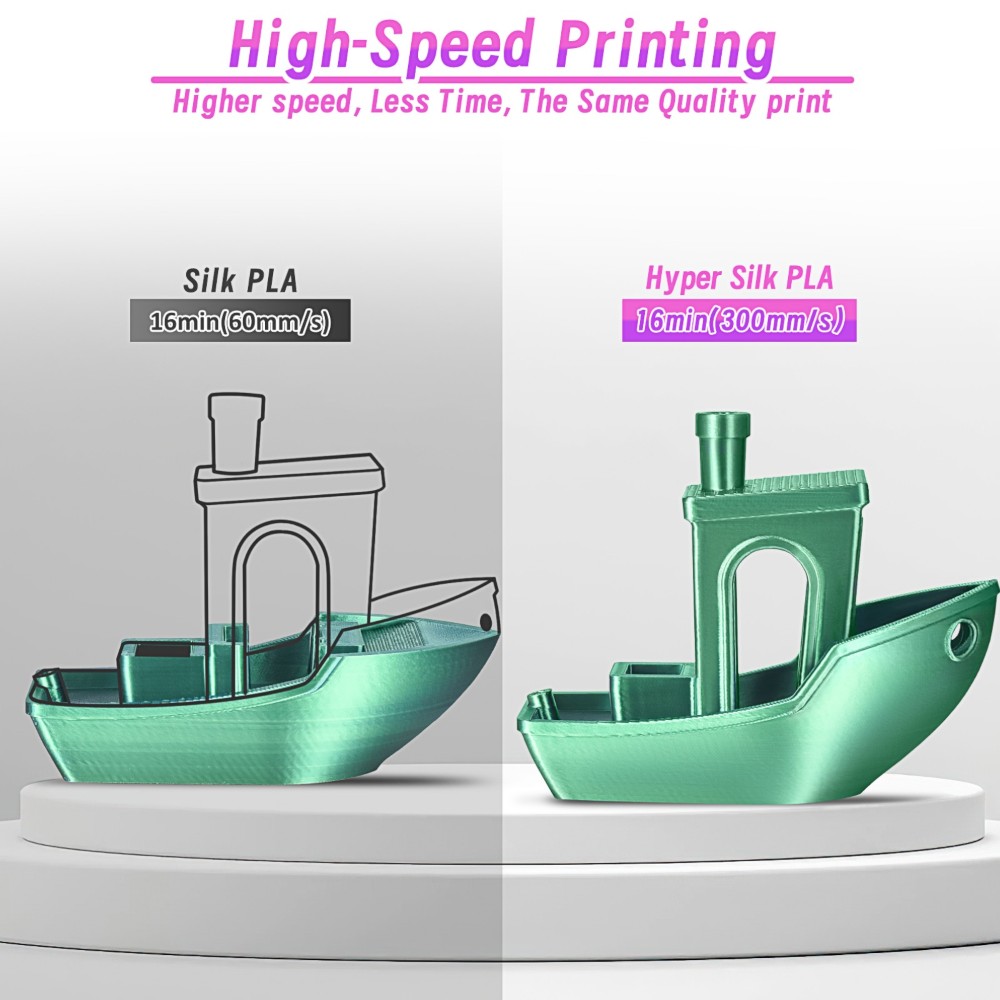 O filamento PLA de alta velocidade da ERYONE possui fluidez melhorada, permitindo que derreta rapidamente e flua de forma suave, alcançando velocidades de impressão até 500 mm/s.