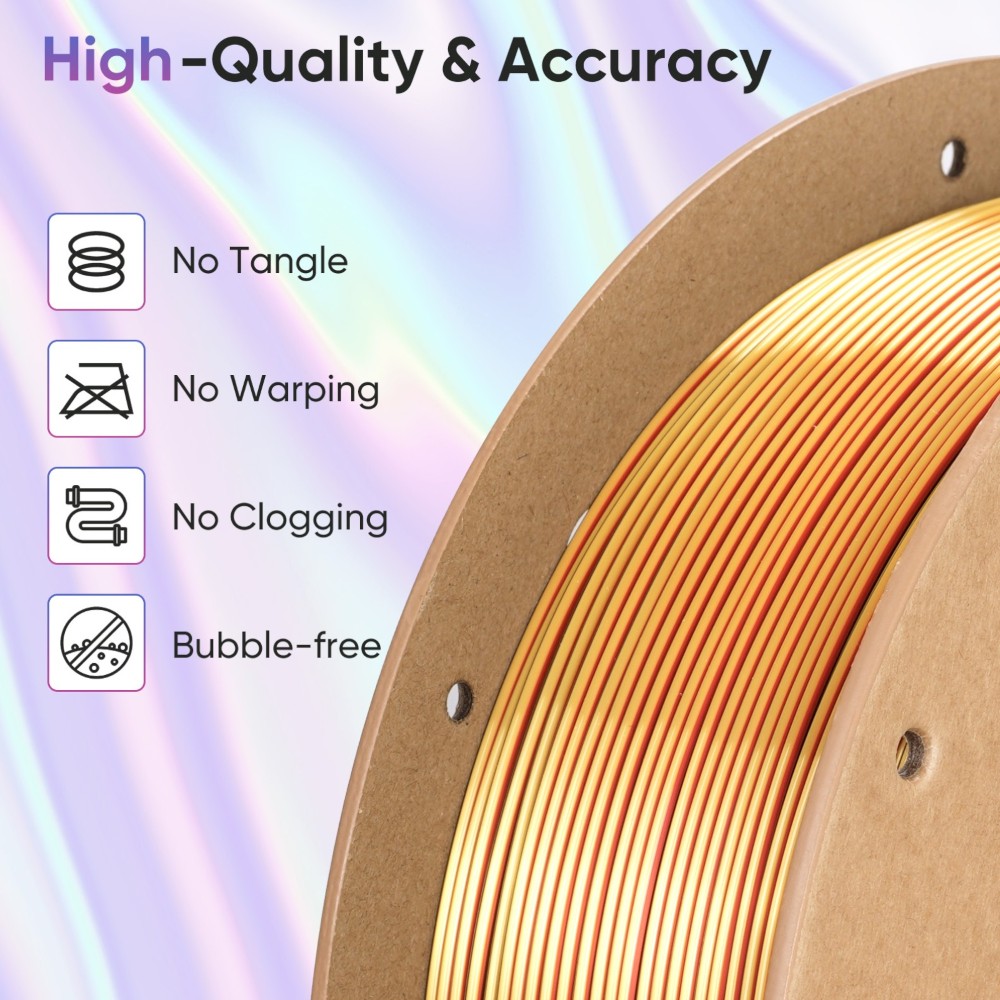 Dá vida às tuas impressões com cores vibrantes tipo arco-íris, com mudanças rápidas de cor a cada 5 a 8 metros, criando um efeito dinâmico e visualmente impactante.